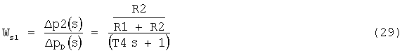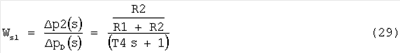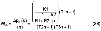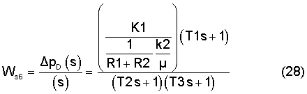 Звено 14 согласно [7] показывает, что в САУ давления Р имеется жесткая отрицательная обратная связь по параметру Р за счет первичного преобразователя давления 13 с передаточной функцией вида: