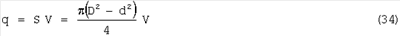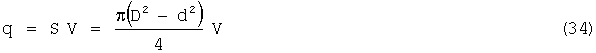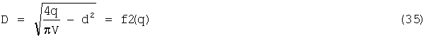 Из уравнения (35) видно, что функция преобразования D=f2(q) при постоянном значении скорости V=const и постоянном значении диаметра d=const нелинейно зависит от q. Необходимо отметить, что бесконтактный измеритель поперечного размера длинномерного изделия (в данном частном случае диаметра D по изоляции кабеля) устанавливается в сечении С4-С4 на конечном расстоянии l3 от головки экструдера (Фиг.1), поэтому всегда есть запаздывание по времени при прохождении сечения готового кабеля от головки экструдера до сечения С4-С4.