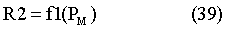 Данная функция отражает, как меняется гидравлическое сопротивление проходного сечения конусного участка широкодиапазонной управляемой головки экструдера в зависимости от давления РM масла в закрытой полости под волнообразной, гибкой оболочкой конусного участка головки экструдера. Функция R2=f1(PM) может быть найдена путем расчета величины деформации волнообразной оболочки конусного участка головки экструдера на основе теории сопротивления материалов. Гидравлическое сопротивление R2, как это видно из уравнений (31), (32), (33) и структурных схем Фиг.5, Фиг.6, меняет передаточные функции звеньев 1, 2, 6, что должно быть учтено при расчете динамического режима работы замкнутой САУ поперечного размера длинномерного изделия. Данный расчет в настоящей заявке не приводится, так как в настоящей заявке рассматривается только установившийся режим работы функциональной системы управления червячным экструдером и не ставится вопрос о расчете динамических корректирующих звеньев системы.
