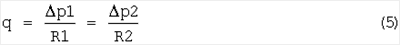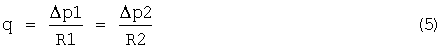 Согласно [3] описание режимов работы широкодиапазонной управляемой головки экструдера представляется в виде системы уравнений (3), (7), (8), (10-11). На Фиг.4 согласно уравнению (7) построены кривые изменения q( р) для различных значений гидравлического сопротивления R. С увеличением гидравлического сопротивления R от значения Rmin (кривая 5) до Rmax (кривая 6) функция q( р) широкодиапазонной управляемой головки экструдера уходит вниз от положения 5 до положения кривой 6.