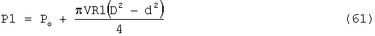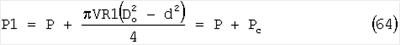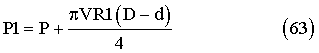 При дальнейшем рассмотрении необходимо выделить три характерных участка для широкодиапазонной управляемой головки экструдера: первый участок заключен между сечением C1-С1 и сечением С2-С2, проходящим через центральную ось первичного преобразователя давления 13 (Фиг.1); второй участок заключен между сечением С2-С2 и выходным срезом матрицы 7 (сечение С3-С3), третий участок заключен между сечением С3-С3 и сечением С4-С4, в котором обычно размещают электронный измеритель поперечного размера (диаметра изоляции кабеля, толщины ленты) длинномерного изделия. В сечении C1-С1 поток пластмассы характеризуется давлением Р1 и объемным расходом q. В сечении С2-С2 поток пластмассы характеризуется давлением Р и объемным расходом q. На выходном срезе головки давление будет равно атмосферному давлению Р и расход также будет равен q.
