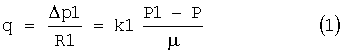 p1=P1-Р – разность давлений на входном и выходном концах участка У1,