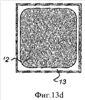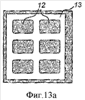 Фиг.14 показывает вид сверху слоистого материала, в котором каркас 13′ заключает в себе прямоугольные углубленные участки 12.