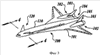 Как показано на фиг.4, узел 120 переднего оперения содержит две аэродинамические части 130 (показанные как левая аэродинамическая часть 130а и правая аэродинамическая часть 130b). Каждая аэродинамическая часть 130 может содержать первую или верхнюю поверхность 131а и вторую или нижнюю поверхность 130b. Аэродинамические части 130 могут быть соединены с соединительной частью 140 (такой как вал), который проходит между аэродинамическими частями 130 через корпус 113 переднего оперения. В соответствии с этим аэродинамические части 130 проходят снаружи фюзеляжа 110, а соединительная часть 140 проходит внутри фюзеляжа 110. Зона 121 сопряжения узла 120 переднего оперения может находиться на одной линии с наружной стенкой фюзеляжа 110, между наружными частями и внутренними частями узла 120 переднего оперения.