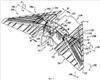 Как показано дополнительно на фиг.5, аэродинамические части 130 могут содержать продольные лонжероны 136 и/или поперечные стрингеры 137, расположенные для увеличения жесткости и целостности конструкции. Согласно частному аспекту этого варианта выполнения стрингеры 137 центральной части 133 могут сходиться по мере прохождения в направлении фюзеляжа 110. Согласно другому аспекту этого варианта выполнения стрингеры 137 могут быть соединены в единое целое с соединительной частью 140 для обеспечения сильной структурной связи между соединительной частью 140 и аэродинамическими частями 130. В альтернативных вариантах выполнения аэродинамические части 130 могут иметь другие структурные системы, такие как конструкция с ламинированным сердечником.