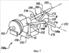 На фиг.6 частично показан в увеличенном масштабе в изометрической проекции исполнительный узел 160 узла 120 переднего оперения, показанного на фиг.5. Исполнительный узел 160, частично показанный на фиг.5 и 6, может быть исполнительным узлом 160, согласно изобретению, таким как исполнительный узел 60, описание которого приведено выше со ссылками на фиг.2. В качестве альтернативного решения исполнительный узел 160 может иметь один или более компонентов, которые сдвинуты в боковом направлении относительно других компонентов. Например, на фиг.7 частично показан в увеличенном масштабе в изометрической проекции исполнительный узел 160а, показанный на фиг.6, согласно одному варианту выполнения изобретения. Исполнительный узел 160а содержит исполнительный механизм 159, имеющий вращающийся электродвигатель 161, соединенный с шариковым ходовым винтом 162. Шариковый ходовой винт 162 может входить в зацепление с соответствующей шариковой гайкой 163, которая может быть соединена с первой частью 172 приводного элемента 174. Аналогичным образом вторая часть 176 приводного элемента 174 может быть соединена без возможности прокручивания (например, жестко соединена) с частью 140а приводного вала соединительной части 140. Исполнительный механизм 159 расположен так, что ось 153 исполнительного механизма не пересекается с продольной осью 151 части 140а приводного вала соединительной части 140. Таким образом, удлинение исполнительного механизма 159 вдоль оси 153 исполнительного механизма может обеспечивать силу, которая поворачивает часть 140а приводного вала.