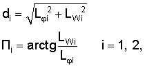 – составляющие горизонтальной дальности di от ЛА до двух заданных точек ВПП в географической системе координат;