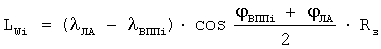 LВПП , LВППw – составляющие расстояния между двумя заданными точками ВПП в географической системе координат;