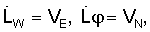 L , LW – составляющие дальности d от ЛА до центра начала ВПП в географической системе координат;