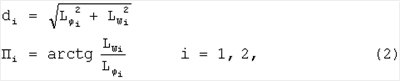 L 1, Lw1 – составляющие дальности d1 до центра начала ВПП по осям системы координат NO1E, соответственно, на север и на восток;