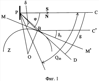 На фиг.1-3 все построения выполнены в плоскости, образованной радиус-вектором КА и направлением на Солнце, и введены обозначения: