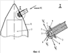 Применительно к термостатированию приборов СУ 9 диффузор также размещают вблизи обтекателя РБ 10 (фиг.7) так, что обеспечивается истечение ТС через выходное отверстие 4 в продольной плоскости в сторону задней части блока с вектором скорости V4 ТС и одновременно истечение ТС через выходное отверстие 5 в перпендикулярном к нему направлении с вектором скорости V5 ТС.