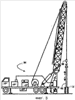 Обратимся вновь к рассмотрению фиг.1, на которой показано, что вес, приложенный к блоку 38, измеряют, например, при помощи гидравлического башмака 92, который поддерживает вес деррик-крана 40. Обычно гидравлическим башмаком 92 является поршень в цилиндре, но это может быть и диафрагма. Гидравлическое давление в башмаке 92 возрастает при увеличении веса груза на блоке 38, и это давление можно контролировать для оценки веса груза на блоке. Для определения веса груза на блоке могут быть использованы и другие типы датчиков, в том числе магистральные индикаторы, прикрепленные к неподвижному концу талевого каната подъемного механизма, датчики деформации, которые измеряют любые приложенные к деррик-крану силы сжатия, или динамометрические элементы, установленные в разных положениях на деррик-кране или на наголовнике. В то время как вес груза на блоке может быть измерен любым возможным образом, следует иметь в виду, что точное значение измерения не является критическим в соответствии с настоящим изобретением, однако важно, чтобы вес груза на блоке был измерен.