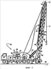 Подъемный механизм 36 управляет движением троса 37, который выходит из подъемного механизма 36 поверх верхней части блока колеса наголовника 55, расположенного у вершины деррик-крана 40 и поддерживающего передвижной (подвижный) блок 38. Подъемный механизм 36 наматывает и разматывает трос 37, в результате чего передвижной блок 38 перемещается между его верхним положением у блока колеса наголовника 55 и его нижним положением у настила, которым обычно является положение у ствола скважины 58, но это может быть и положение на высоте поднятой платформы, расположенной над стволом скважины 58 (не показано). Положение передвижного блока между его верхним положением у наголовника и нижним положением у настила всегда следует контролировать, например, при помощи системы, описанной в патенте США No 4,334,217.