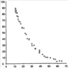 Чертеж: Полученное этим тестом общее количество твердого вещества (цеолита плюс гидроксид тетрапропиламмония в вес.%) показано на горизонтальной оси, а именно как функция потока пропускаемой фазы (в кг/м2/ч), нанесенной на вертикальную ось.