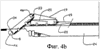 e) Затем завершают введение технологического агрегата в приемное приспособление 1. Первый конец 4а агрегата 4 удерживают на месте в приемном приспособлении 1.
