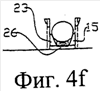Затем башмаки 16 сепаратора опускают на салазки 15 на платформе 23, как показано на фиг.2е и 4е, а хомут 18, который может управляться дистанционной системой (ROV), отсоединяют от этой системы.