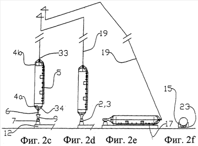 Рассмотрим теперь фиг.2а-2f и 4а-4f. Альтернативной операцией развертывания может быть спуск сепаратора 4, например, посредством 500-тонной лебедки 31 через кормовой валок 29 на палубе 14 (авиационной подъемно-транспортной машины) судна (AHV), как показано на фиг.2а-2b и 4а-4b.