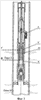 При возвратно-поступательном движении комбинированного плунжера в интервале а-б (фиг.2) работает только нижний пласт II. Проход бокового клапана 2 закрыт телом плунжера 17, обеспечивая перекрытие пласта I. При ходе комбинированного плунжера вверх из а в б пластовая жидкость всасывается через клапан 12, пройдя через кольцевое пространство 8 и боковые отверстия 9, и заполняет пространство под плунжерами 17 и 19. При ходе комбинированного плунжера вниз из положения б в положение а накопленная в полостях установки пластовая жидкость нагнетается через клапан 18 в насосно-компрессорные трубы 26.
