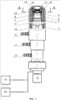 В оболочку 1 через патрубок 3 поступает охлаждающая вода и, пройдя через систему водяного охлаждения, возвращается через патрубок 4. Продувочный газ (воздух) подается через патрубок 17 в пространство перед защитным стеклом 16 и обеспечивает надежную защиту последнего от воздействия частиц в виде пыли, искр, возникающих при проведении, например, плавки металла в металлургической печи. Защитное стекло 16 не подвергается воздействию силовых нагрузок, так как давления по обе стороны от него одинаковые.