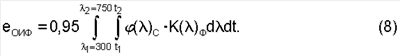 Непосредственное измерение эксергии ЭСИ возможно с помощью фотоэлектрического перехода со спектральной чувствительностью соответствующей спектральной эффективности преобразования ЭСИ в электрическую энергию. Этим обусловлена целесообразность использования в разрабатываемой системе (приборе) в качестве измерительного приемника кремниевого фотоэлемента, являющегося одновременно и основным видом практического преобразования ЭСИ в электрическую энергию. В этом случае эксергия ЭСИ (еФЭ) будет определяться по выражению: