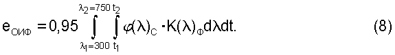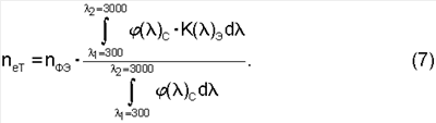 где К( )ФЭ – спектральная эффективность фотоэлектрического преобразователя ЭСИ; 1, 2 – длины волн излучения, ограничивающие спектральную эффективность преобразователей.