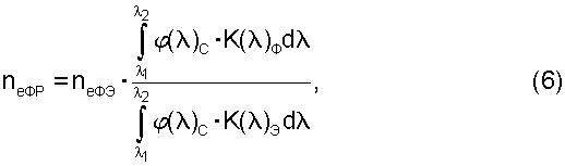 В случае измерения фотосинтезной эксергии ее величина также определяется по выражению (5), но вместо спектральной эффективности фотоэлектрического преобразователя необходимо использовать величину (функцию) спектральной эффективности фотосинтеза К( )Ф. При этом граничные значения длин волн в выражении (5) будут 1=300 нм, 2=750 нм. Относительные числовые значения К( )Ф регламентированы ОСТ 46.140-83 [16] и ОСТ 60.689.027-74 (ОСТ 46.140-83. Излучение оптическое. Оценка фотосинтезной эффективности. Термины и определения. М.: Минсельхоз СССР, 1983). Регламентирование К( )Ф осуществлено и в ФРГ национальными нормами (Deutsche normen DIN/5031 Teil 10). Уточненные значения К( )Ф содержатся в ОСТ 46.140-83.