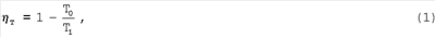 где T1 – температура теплоносителя на входе в тепловой преобразователь энергии, К; Т0 – то же самое на выходе из преобразователя (потребителя) тепловой энергии.