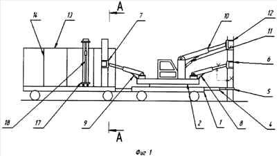 На фиг.1 представлен основной вид лесного комбайна; на фиг.2 – вид сверху по фиг.1; на фиг.3 – разрез А-А по фиг.1.
