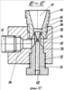 На фиг.10 – сечение Е-Е на фиг.9, поперечно-вертикальный разрез корпуса эжектора, иглы с соплом Лаваля на конце и диффузором с камерой смешения.