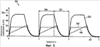фиг. 2 – графики изменения во времени молочной продуктивности коровы при доении с достаточной предварительной стимуляцией и при доении без достаточной предварительной стимуляции;