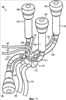 фиг. 1 – доильное снаряжение в доильной машине согласно уровню техники, в перспективе;