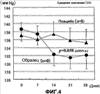 Фиг.4 иллюстрирует антигипертензивный эффект (систолическое кровяное давление) композиции кофе, не содержащей HHQ (образец), у человека.