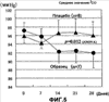 Фиг.5 иллюстрирует антигипертензивный эффект (диастолическое кровяное давление) композиции кофе, не содержащей HHQ (образец), у человека.