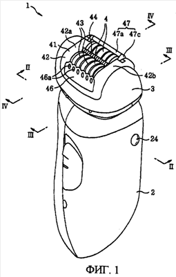 Фиг.1 – изображение в перспективе внешнего вида устройства для удаления волос согласно одному из осуществлений настоящего изобретения;