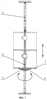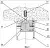 От центра, установленного на потолочном перекрытии, диска 20 по отвесу определяется расположение на полу центра диска 14. Если покрытие пола деревянное, то диск с ввинченными и заостренными установочными винтами 18 забивается в пол молотком, если же пол имеет твердое покрытие (бетон, керамическая плитка и т.п.), то необходимо, как описано в операции установки диска 20 на потолочное перекрытие, разметить и просверлить периферийные глухие отверстия под установочные винты аналогичные по исполнению установочным винтам 25.