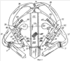 Фиг.1-4 иллюстрируют приспособление для ношения ребенка, основные конструктивные элементы которого являются по существу известными, например, из документа WO 03/003880A1. Данное приспособление содержит две нагрудные лямки 31, каждая из которых при использовании приспособления располагается по существу вертикально на соответствующей стороне груди пользователя. Каждая нагрудная лямка 31 проходит поверх соответствующего плеча пользователя и пересекается на спине пользователя с другой нагрудной лямкой. Участки 36 лямки, взаимно пересекающиеся на спине пользователя, скреплены фурнитурой 14 (при этом вокруг бедер пользователя проходит дополнительный участок 37 лямки) и ниже указанной точки 14 пересечения оканчиваются связующей фурнитурой 11, 11′, к которой также присоединен нижний участок нагрудной лямки 31.