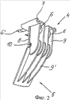 Толкающий рычаг 3 (фиг.2) состоит из верхнего элемента 4, включающего а) удлиненную горизонтальную направляющую часть со средствами 7 зацепления, сцепленными с направляющими рельсами 2, и б) соединительную часть 8, расположенную перпендикулярно к удлиненной направляющей части и соединенную шарнирным соединением с нижним элементом 5, свободный конец которого имеет желательную форму, обычно форму плоской пластины. Толкающий рычаг 3 имеет ребра 9,9′ жесткости на задних поверхностях соединительной части 8 и нижнего элемента 5 соответственно. В зоне шарнирного соединения 10 ребра жесткости выступают за шарнирное соединение 10 и образуют упоры, ограничивающие перемещение нижнего элемента 5 толкающего рычага 3 вокруг оси шарнирного соединения 10. На верхнем участке соединительной части 8 между ребрами 9 жесткости установлены приводные пружины 6, концы 6′ которых, прикрепленные к направляющей пластине 1, отогнуты и снабжены захватывающими отверстиями.