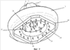 Подвижность верхней части 5 относительно нижней части 1 ограничена на этом фоне, во-первых, тем, что в уже упомянутом первом крайнем положении шипы 19 пластины 14 и нижней части 1 опираются на плоское основание. Это одновременно является положением, в котором дальнейшее перемещение верхней части характеризуется прилеганием частей ее нижней стороны к наружной стороне выпуклости 11. Во-вторых, противоположное ему второе крайнее положение верхней части 5 характеризуется тем, что дальнейшее перемещение к верхней стороне 2 ограничено сужающимися в форме усеченного конуса внутренними сторонами выпуклости 11.
