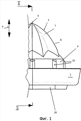 Направляющие штифты 21 проходят сквозь отверстия 22 пластины 14 и расположены в этих отверстиях с возможностью скольжения. Особенно предпочтительно, если нижние концы направляющих штифтов 21 выполнены, как и шипы 19, с заостренной или острой кромкой.
