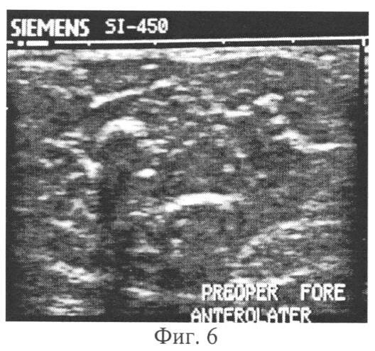 Фиг.6 – поперечный УЗ-срез плечелучевой мышцы пораженного предплечья больного Л. до лечения.