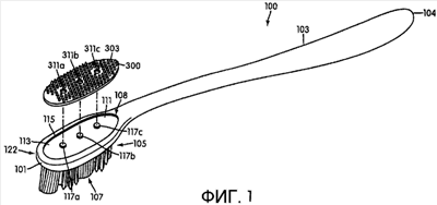 В последующем описании изобретение обсуждается на основе зубной щетки, но оно могло быть осуществлено в виде других предметов для ухода за полостью рта, включая просто средство для чистки тканей. Кроме того, следует учесть, что могут быть использованы другие варианты и сделаны структурные и функциональные изменения, не выходящие за пределы настоящего изобретения.