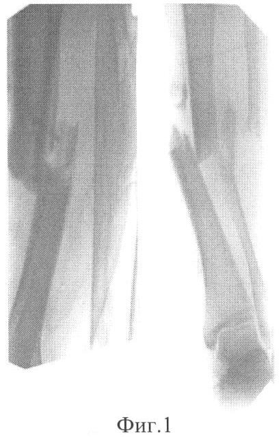 Фиг.1 – рентгенограмма голени больной до лечения;