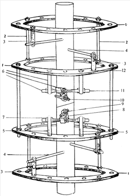 На чертеже изображен аппарат для чрескостного остеосинтеза с узлами репозиции.