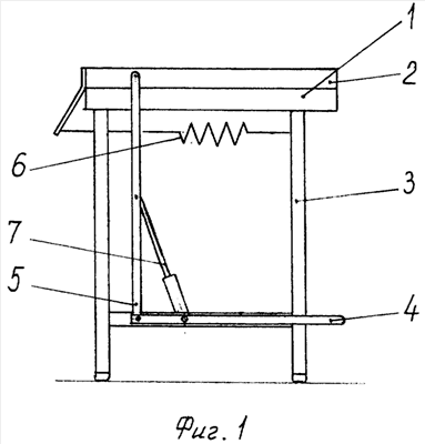 Стол для размещения медицинских инструментов состоит из поддона 1 для инструментов, крышки 2, трубчатого основания 3, педали 4, тяг 5, пружин 6, демпфера 7.