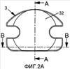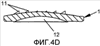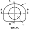Фиг.4a – вид снизу верхней пластины протеза, с плоскостями сечений A-A и B-B, изображенных, соответственно, на фиг.4c и 4d, а на фиг.4b представлен вид сбоку верхней пластины протеза межпозвоночного диска в соответствии с вариантом осуществления изобретения.