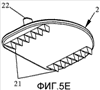 Фиг.5a – вид сверху нижней пластины протеза, а на фиг.5b и 5c представлены, соответственно, вид сбоку и вид спереди нижней пластины протеза, и на фиг.5d и 5e представлены, в перспективе, соответственно, вид сверху и вид снизу нижней пластины протеза межпозвоночного диска в соответствии с вариантом осуществления изобретения.