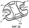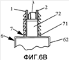 Фиг.6a – вид в перспективе зажима устройства для вставки протезов межпозвоночного диска между двумя позвонками, на фиг.6b и 6c представлены частичные вид сбоку и вид сверху, соответственно, головки загрузочного приспособления устройства для вставки протеза между двумя позвонками, с протезом, удерживаемым зажимом в выдвинутом положении, и на фиг.6d изображен вид в перспективе зажима устройства для вставки протезов межпозвоночных дисков между двумя позвонками.