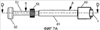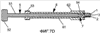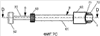 Фиг.7a – вид сверху собранного устройства для вставки протеза между двумя позвонками, когда протез, удерживаемый зажимом, отведен в головку загрузочного приспособления, на фиг.7b представлено то же самое, но в сечении D-D, показанном на фиг.7a, на фиг.7c представлен вид сверху собранного устройства для вставки протеза между двумя позвонками, когда протез, удерживаемый зажимом, выдвинут из головки загрузочного приспособления, и на фиг.7d представлено то же самое, но в сечении D-D, показанном на фиг.7c.