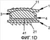 Фиг.1a – вид в перспективе протеза в соответствии с вариантом осуществления изобретения, при наблюдении спереди, а на фиг.1b представлен вид сверху протеза с плоскостями сечений A-A и B-B, изображенных, соответственно, на фиг.1c и 1d.